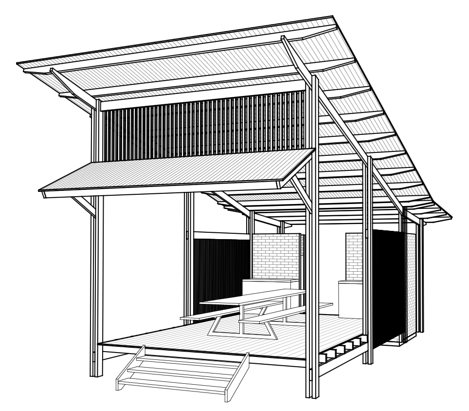 Concept design for (above) dual cabins and (below) service providersConcept design for the dining area – a small kitchen is in the backProject team